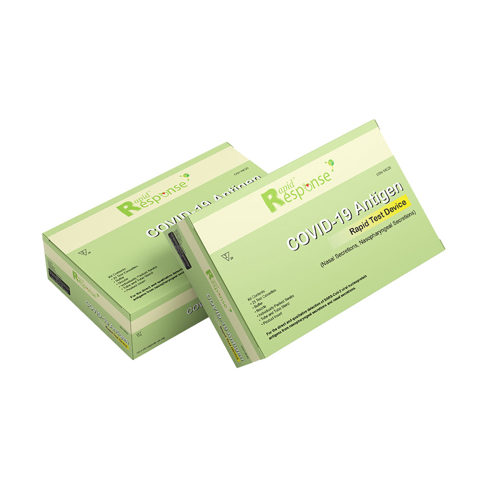 Rapid Response® COVID-19 Antigen Rapid Test Device. It is an efficient, accurate, and reliable method of testing that can be used by any health care professional. It is easy to use and delivers results within 15 minutes!