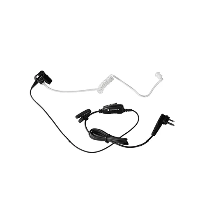 1-wire surveillance earpiece with microphone and PTT. Provides transmit and receive capabilities, and includes a clear acoustic tube with a rubber ear tip for extended wear and comfort.