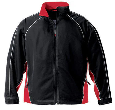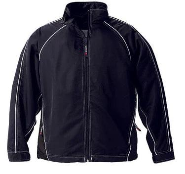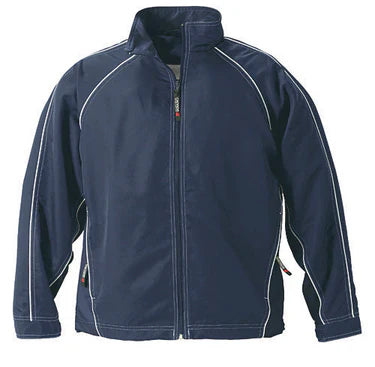 160 gsm – 4.7 oz./yd2 - 8 oz./lin. yd 100% polyester twill with wind resistant and water repellent finish. Mesh lined body and lined sleeves. Contrast stitching with ICWte piping. Adjustable tab closure on cuffs. Two front zippered pockets. Sleek styling for an active lifestyle.